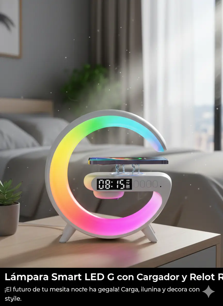 Lámpara smart LED G con cargador y reloj RGB